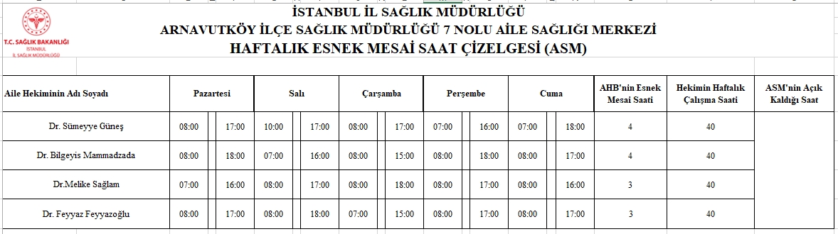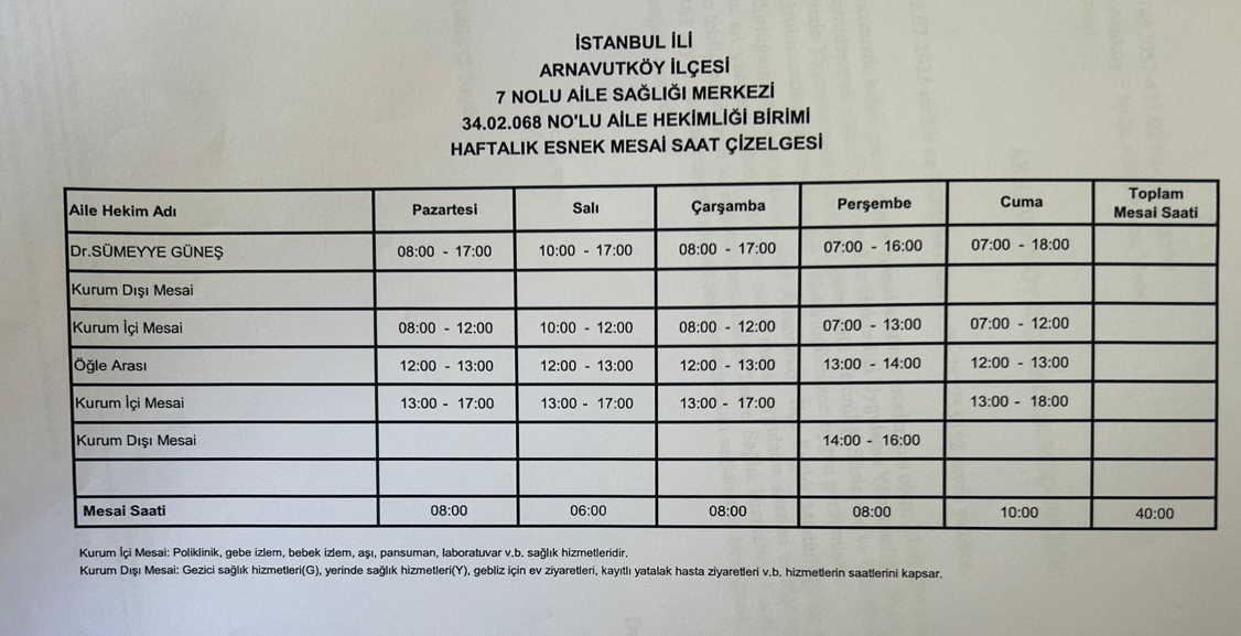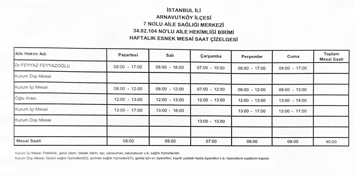 Çalışma Saatlerimiz